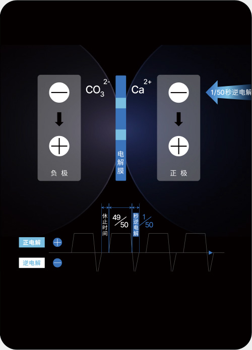 钻石级质子膜、SPE电解法、1/50秒电解槽自动逆洗技术、17段碱性微调功能